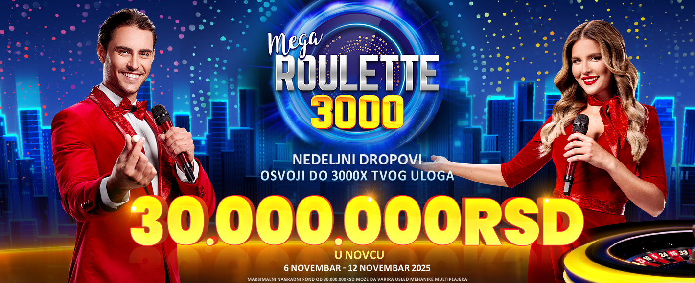 - Zaigraj Mega Roulette 3000 igru i osvoji čak do 3.000 x svog uloga!
